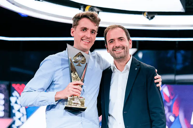 C’est un Français vivant à Malte qui lui a remis le trophée : Julien Liarte (Live Event Manager PokerStars)
