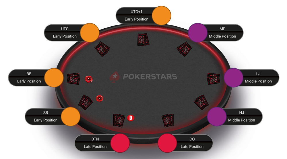 Il faut adapter sa stratégie de jeu à la place qu’on occupe à la table. Une table de neuf joueurs est divisée en trois catégories : position initiale, position intermédiaire et position finale.