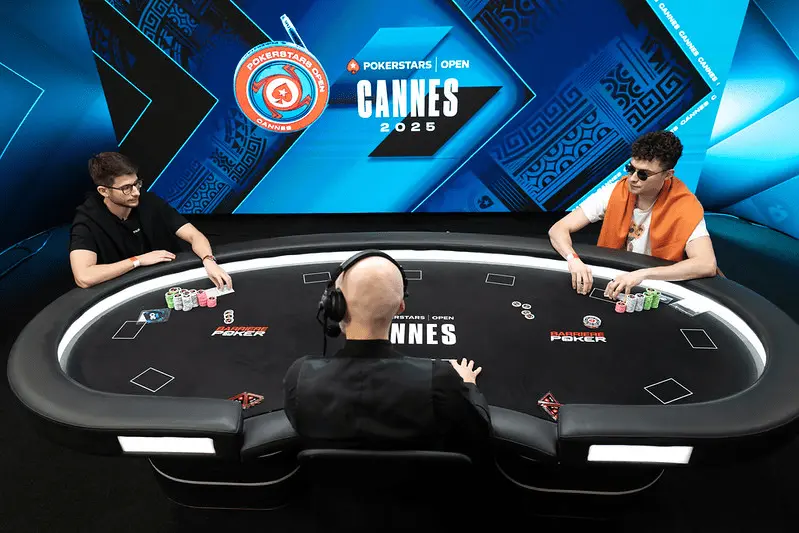 Avec 32 joueurs restants dans ce Main Event PSopen Cannes 2025, la pression est montée d’un cran dans la salle de conférence du Palais des Festivals et l’étau se resserre sur notre contingent français. Romain Mahiou et Kamel Atoui viennent de se replacer dans la course à la table finale en profitant, à quelques minutes d’intervalle, d’un coup de pouce du destin.