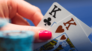 Premièrement cela permet de contrôler la taille du pot et de ne pas tout perdre si notre adversaire a QQ par exemple, cela offre aussi la possibilité de faire croire à notre adversaire que nous sommes en train d’abandonner dans les cas hypothétiques ou nous étions en bluff. Pour ma part, je sais que je n’aurais jamais pris un spot de cold 4-bet bluff à ce moment du tournoi, cependant mon adversaire n’est pas censé le savoir. Nous nous retrouvons dans un spot où nous n’avons que très peu de value et où il y a très peu de protection à avoir. Lorsque ces 2 éléments sont réunis, il n’y a qu’une seule solution valable : checker.