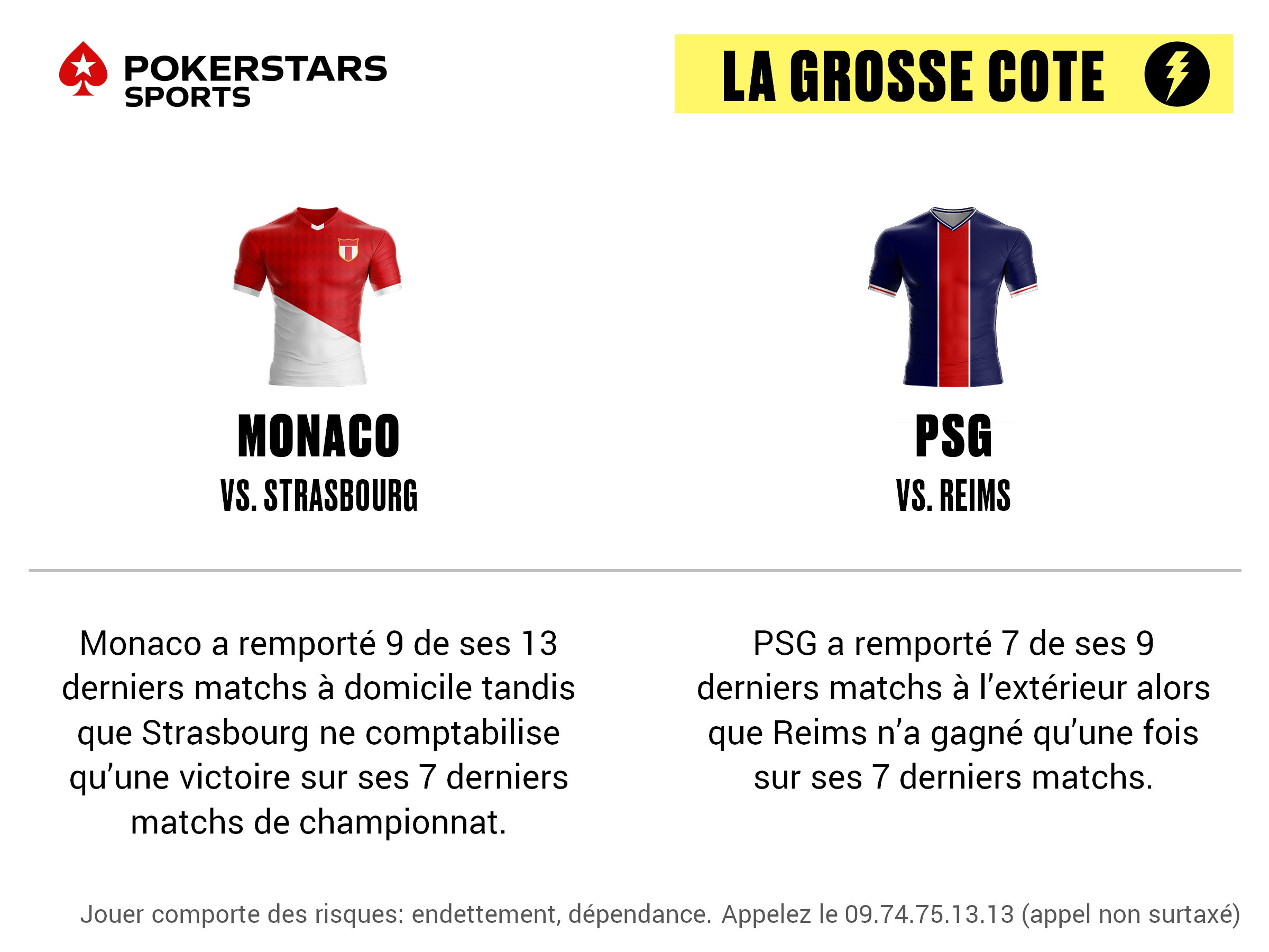 Chaque semaine, PokerStars Sports propose LA GROSSE COTE, en misant une cote boostée sur une ou plusieurs équipes ! Pour cette quatrième journée, le PSG et Monaco partent légitimement favoris contre respectivement Reims et Strasbourg, deux équipes à la peine en ce début de saison.